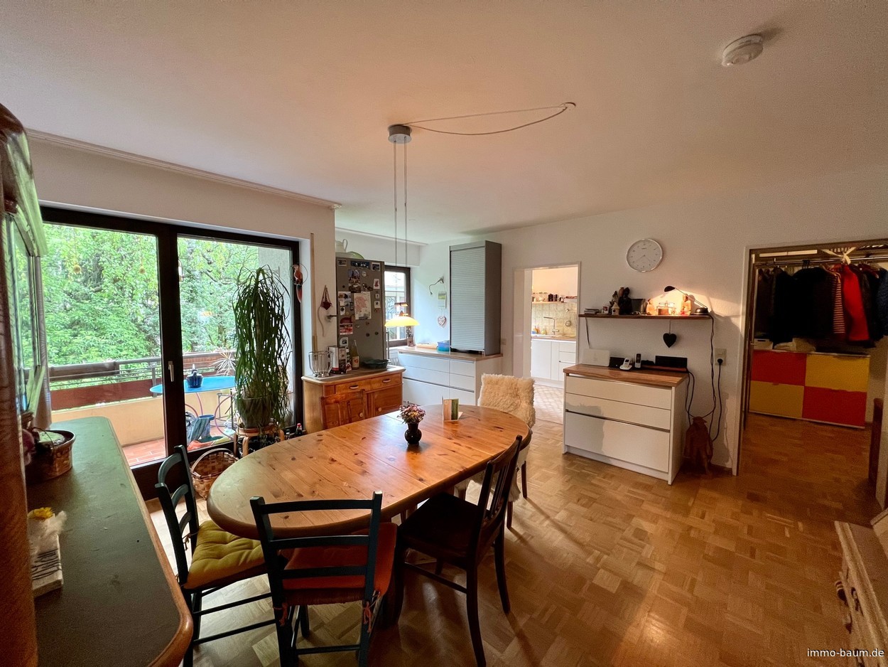 Bei der angebotenen Immobilie handelt es sich um eine großzügige vier Zimmer Wohnung mit zwei Balkonen und zwei Tiefgaragenplätzen in der schönen Dreisamtalgemeinde Kirchzarten. Die Wohnung befindet sich im ersten Obergeschoss in ruhiger Lage in der Nähe zum Ortszentrum von Kirchzarten. Von dem großen überdachten Südbalkon hat man einen herrlichen Ausblick in die Natur. Das im Jahr 1978 erstellte Gebäude hat insgesamt 10 Einheiten, davon ist eine im Untergeschoss eine Gewerbeeinheit/Praxis mit eigenem Zugang. Zur Wohnung gehört ein Kellerabteil und zwei Tiefgaragenplätze, die zusätzlich zusammen 30.000,-- Euro kosten. Im Keller ist ein Wasch- und Trockenraum mit Platz für eine Waschmaschine. Vor dem Haus befinden sich gemeinschaftliche Fahrradabstellplätze. Die Wohnung hat insgesamt ca. 111 m² und ist mit Parkett, Fliesen und in der Küche mit PVC belegt. Das Bad ist mit einer Badewanne, Dusche, Fenster und zwei Waschbecken ausgestattet. Im Flur im Eingangsbereich der Wohnung befindet sich ein Gäste-WC. Das Esszimmer mit ca. 17 m² und kleinem Balkon und das Wohnzimmer mit ca. 26 m² sind direkt mit einer zweiflügeligen Tür verbunden. Der große überdachte Südbalkon mit ca. 16 m² ist sowohl vom Wohnzimmer als auch vom Schlafzimmer begehbar. Gerne stehen wir Ihnen für weitere Fragen oder für eine Besichtigung zur Verfügung. Wir freuen uns über Ihre Kontaktaufnahme.Umgebung: Kirchzarten