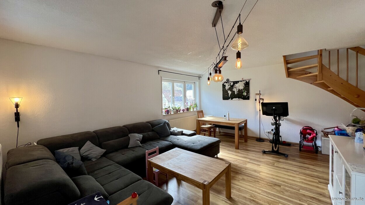 Diese helle und gut geschnittene 3,5 Zimmer-Maisonettwohnung bietet auf einer Gesamtfläche von ca. 89 m² ein gemütliches Zuhause für Paare, Familien oder auch Einzelpersonen, die eine ruhige Wohnlage und gleichzeitig eine gute Erreichbarkeit der umliegenden Städte schätzen. Das Gebäude, das im Jahr 1996 errichtet wurde ist gepflegt und in einem guten Zustand. Die Wohnungen im Obergeschoss des Hauses sind über einen Laubengang zugänglich. Die Wohnung erstreckt sich über zwei Etagen und sorgt mit ihrem durchdachten Grundriss für eine angenehme Wohnatmosphäre. Im unteren Bereich der Maisonettwohnung erreicht man über die Diele das Duschbad und die Küche sowie den großzügigen Wohn- und Essbereich mit direktem Zugang zum Balkon. Über die schöne Holztreppe gelangt man auf die zweite Ebene ins Dachgeschoss. Dort befinden sich das Schlafzimmer, das Kinderzimmer mit Zugang zu dem zweiten Balkon sowie das zweite Bad mit Wanne und Fenster. Der großzügige Abstellraum mit Fenster auf dieser Ebene, kann auch als kleines Büro genutzt werden. Zur Wohnung gehören einen Carport und ein Außenstellplatz, die zusätzlich 15.000,-- EUR kosten. Der zur Wohnung gehörende große Kellerraum, bietet zusätzlichen Stauraum zur praktischen Aufbewahrung von Haushaltsgegenständen. Für weitere Informationen oder zur Vereinbarung eines Besichtigungstermins stehen wir Ihnen gerne zur Verfügung.